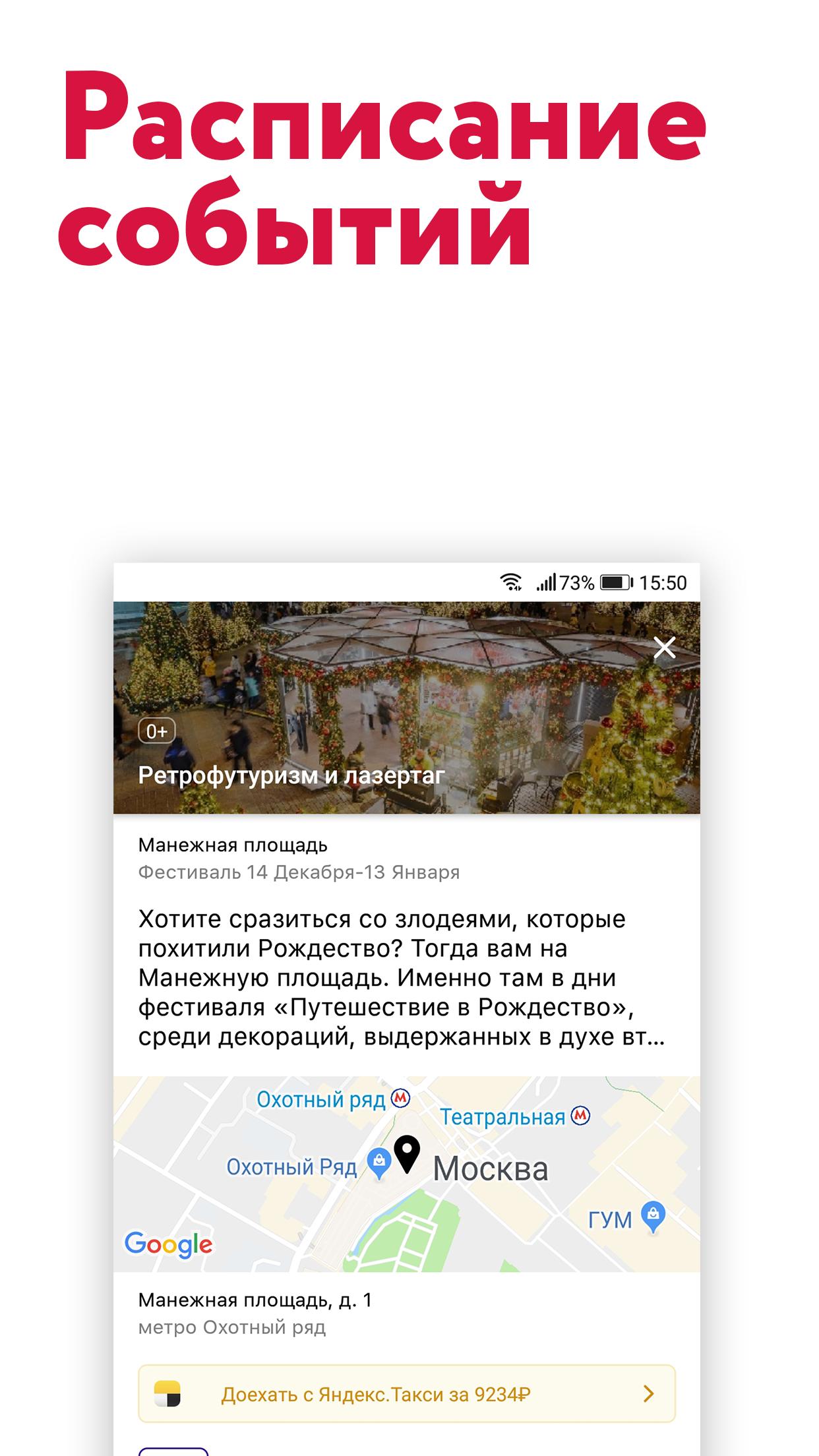 - Расписание в удобном формате: фестивали, выставки, концерты, мастер-классы, спектакли, лекции, ярмарки