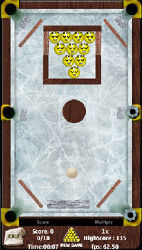 Шары в виде смайликов с эмоциями и препятствия на пути шаров к лузам. Правила игры такие же, как и в обычном бильярде.