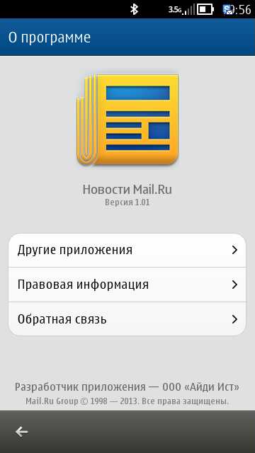 Программа для просмотра новостей от Мail.Ru. Так же можно посмотреть прогноз погоды, пробки на дорогах в вашем городе и курс валют.