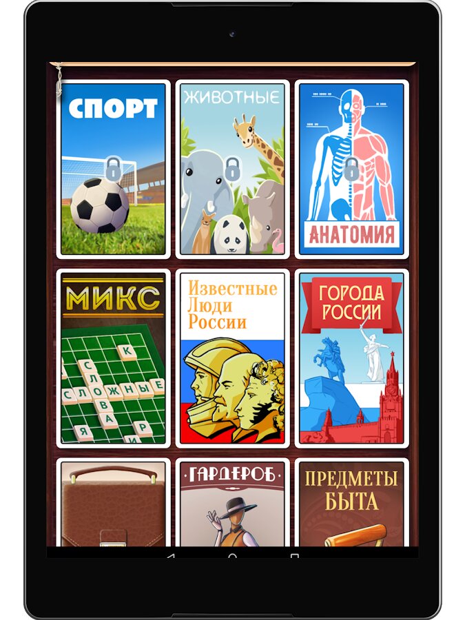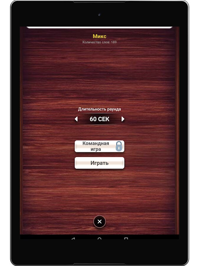 Командный режим игры. Поделитесь с друзьями на две команды, выберите колоду и нажмите кнопку «Командная игра». Программа придумает случайные названия вашим командам и будет сообщать какая команда играет слудующий раунд. Итоговые очки будут суммироваться автоматически и отображаться на главном экране с колодами.