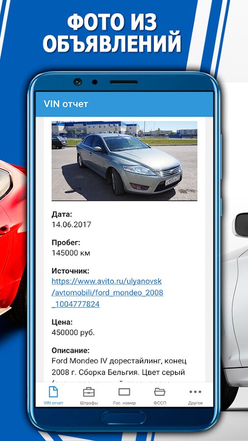 Загрузите полный отчет. Приложение дает возможность загрузить полный отчет по автомобилю и поделиться данными в мессенджере или в соцсетях. Приложение сохраняет историю ваших запросов, но не хранит данные по ним. Для получения информации необходимо подключение к интернету.