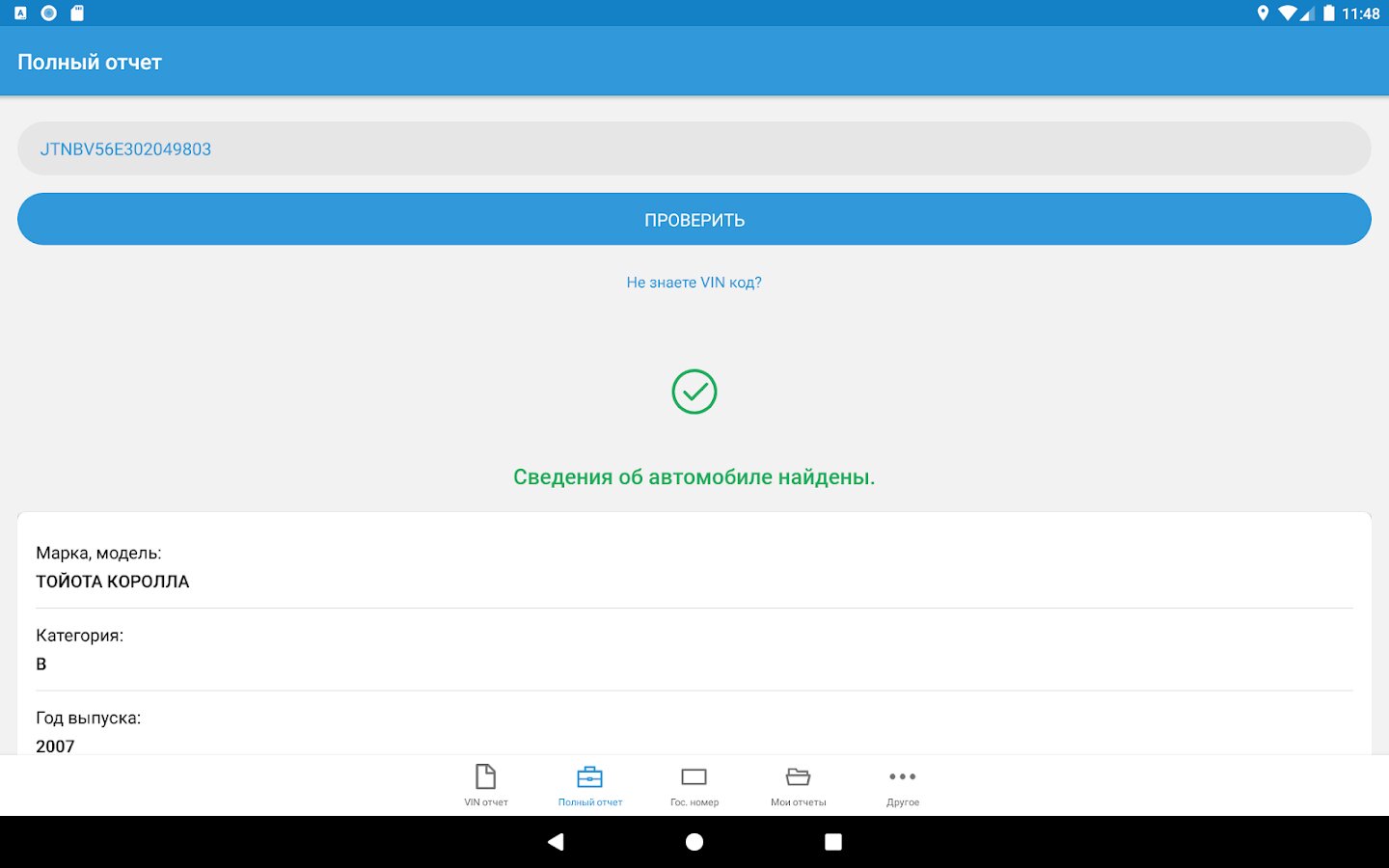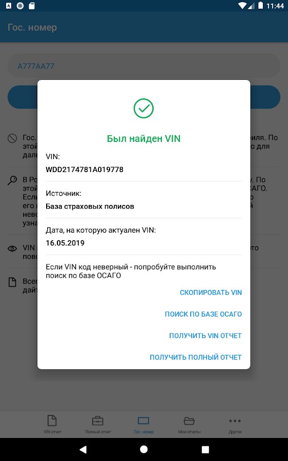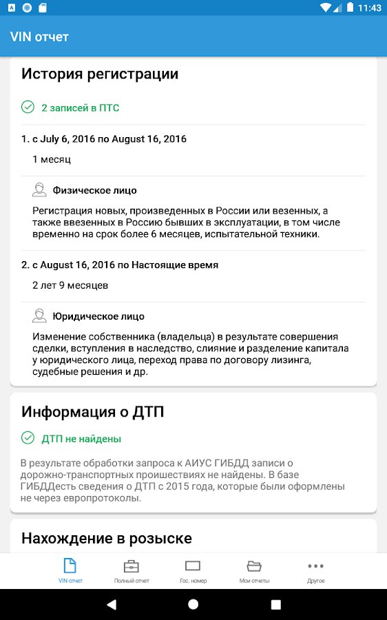 Загрузите полный отчет. Приложение дает возможность загрузить полный отчет по автомобилю и поделиться данными в мессенджере или в соцсетях. Приложение сохраняет историю ваших запросов, но не хранит данные по ним. Для получения информации необходимо подключение к интернету.