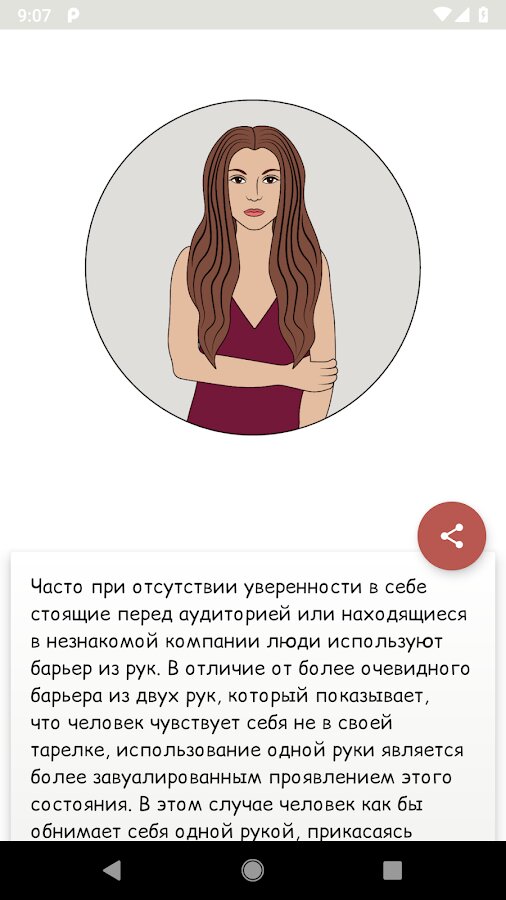 Человек мыслит и разговаривает всем телом. Для определения признаков лжи в данном приложении рассматриваются многие виды языка тела, среди которых: