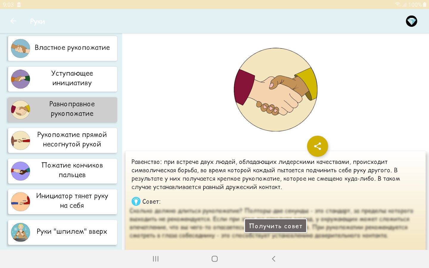 Методы из этого приложения применяются многими сферами: полицией, службами безопасности, судебными психологами, специалистами по НЛП, профайлерами, менталистами и т.д. Данное приложение может быть полезно для руководителей, школьников, студентов и всех тех, кто хочет разбираться в психологии лжи и лучше понимать людей. Изучайте азбуку жестов и учитесь распознавать ложь по этому приложению!