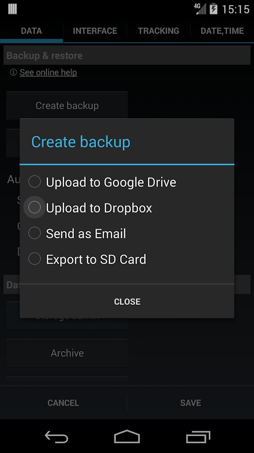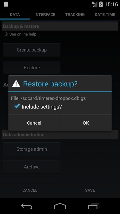 Этот плагин обеспечивает интеграцию Dropbox с Time Recording (резервное копирование, восстановление и отчеты загрузить). Обратите внимание, что для этого требуется полный доступ к вашему Dropbox, а не только «доступ к файлам приложений». Если это беспокоит, вместо этого используйте подключаемый модуль Google Диска (который ограничен доступом к собственным файлам).
