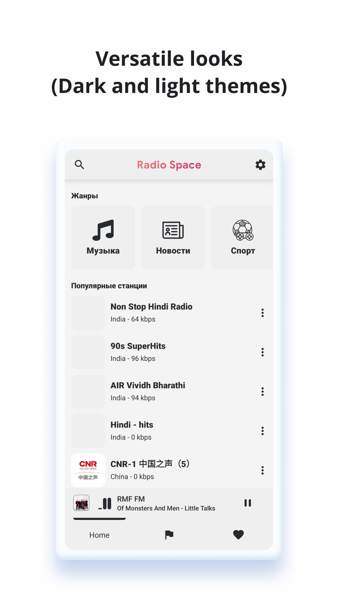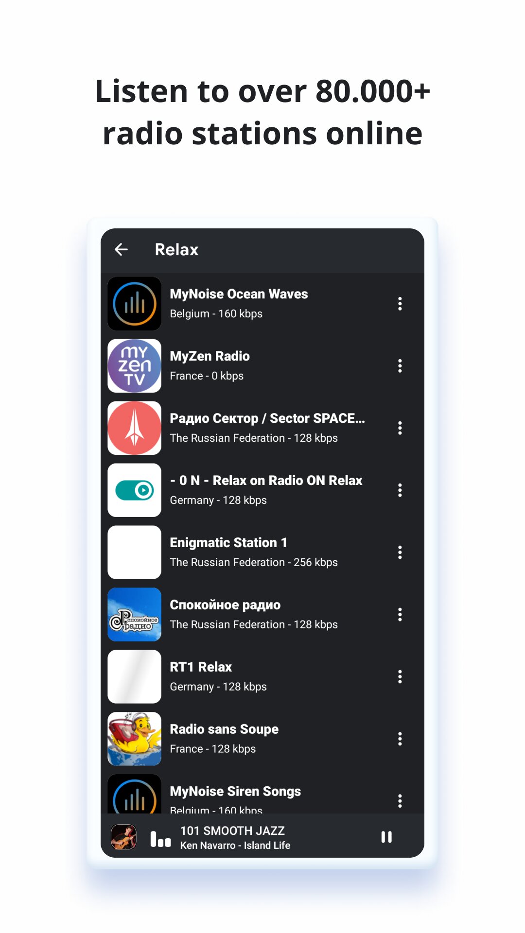 Radio Space — это бесплатное приложение для онлайн-радио с самым большим выбором радиостанций со всего мира. Слушайте и сохраняйте свои любимые, делитесь и открывайте для себя более 80 000 ежедневно обновляемых радиостанций. Слушайте все радиостанции мира в нашем радиоприложении — абсолютно бесплатно.