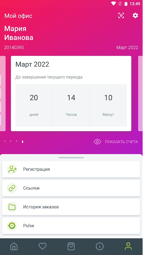 Личный офис. Все актуальные показатели бизнеса: объемы, счета, информация о структуре, регистрация клиентов и партнеров и многое другое. Все, что нужно для развития вашего бизнеса.