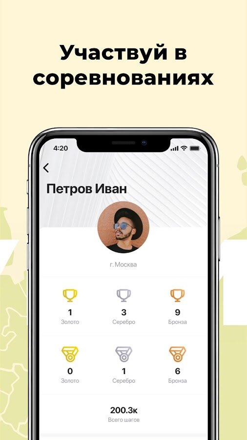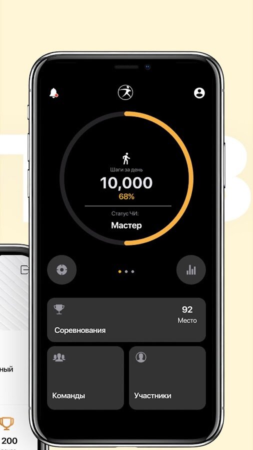 Мобильное приложение «Человек идущий» позволяет принять участие в командных соревнованиях по фоновой ходьбе (количеству шагов в день).