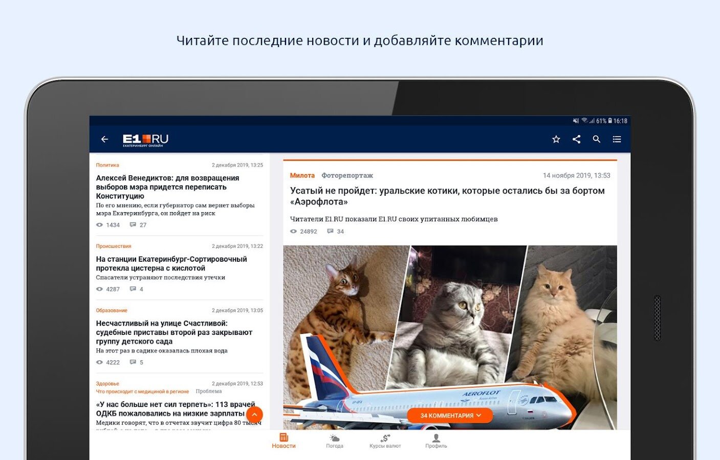 - читать и добавлять свои комментарии к новостям;