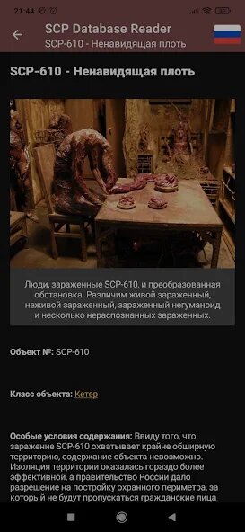 SCP Database Reader читай страшные и интересные статьи о паранормальных явлениях. SCP Database Reader — удобное приложение для чтения тысяч статей на множестве языков про опасные паранормальные явления и организацию, занимающуюся их поиском и сдерживанием. В приложении есть offline режим — можно пользоваться без интернета! Также вы получите доступ ко всем свежим статьям и сможете настроить внешний вид приложения под свой вкус!