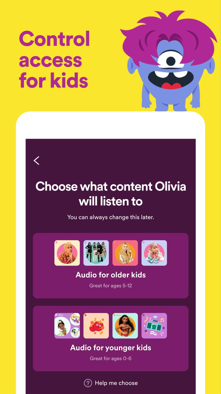 Представьте своего ребенка на игровой площадке со звуком с Spotify Kids. Приложение, наполненное песнями, саундтреками и плейлистами, предназначенными для юных слушателей, позволяет детям всех возрастов легко находить музыку в веселой обстановке. Включено в подписку Spotify Premium Family.