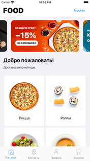 - В быстрой и удобной форме оформить заказ на доставку еды и напитков
