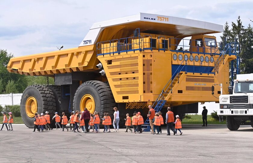 Представитель компании заявил, что на текущий момент «БелАЗ» выпускает карьерные самосвалы с предельной грузоподъёмностью от 30 до 90 тонн на моторах ЯМЗ-240НМ2 и ЯМЗ-45 от «Ярославского моторного завода» (входит в состав группы «ГАЗ»). И в этом году производителю удалось изготовить полноценный опытный образец, который даже отдали в эксплуатацию — данный самосвал при мощности двигателя в 1 000 лошадиных сил демонстрирует грузоподъёмность в 90 тонн. Но в арсенале компании это далеко не самый мощный вариант самосвала — «БелАЗ» готовит к серийному производству куда более выносливую машину. Дело в том, что сейчас компания активно работает с «Коломенским заводом» — на российских производственных мощностях был произведён мотор, который был установлен на новейший самосвал с грузоподъёмностью в 220 тонн. Это транспортное средство компания уже презентовала и теперь работает над запуском серии.