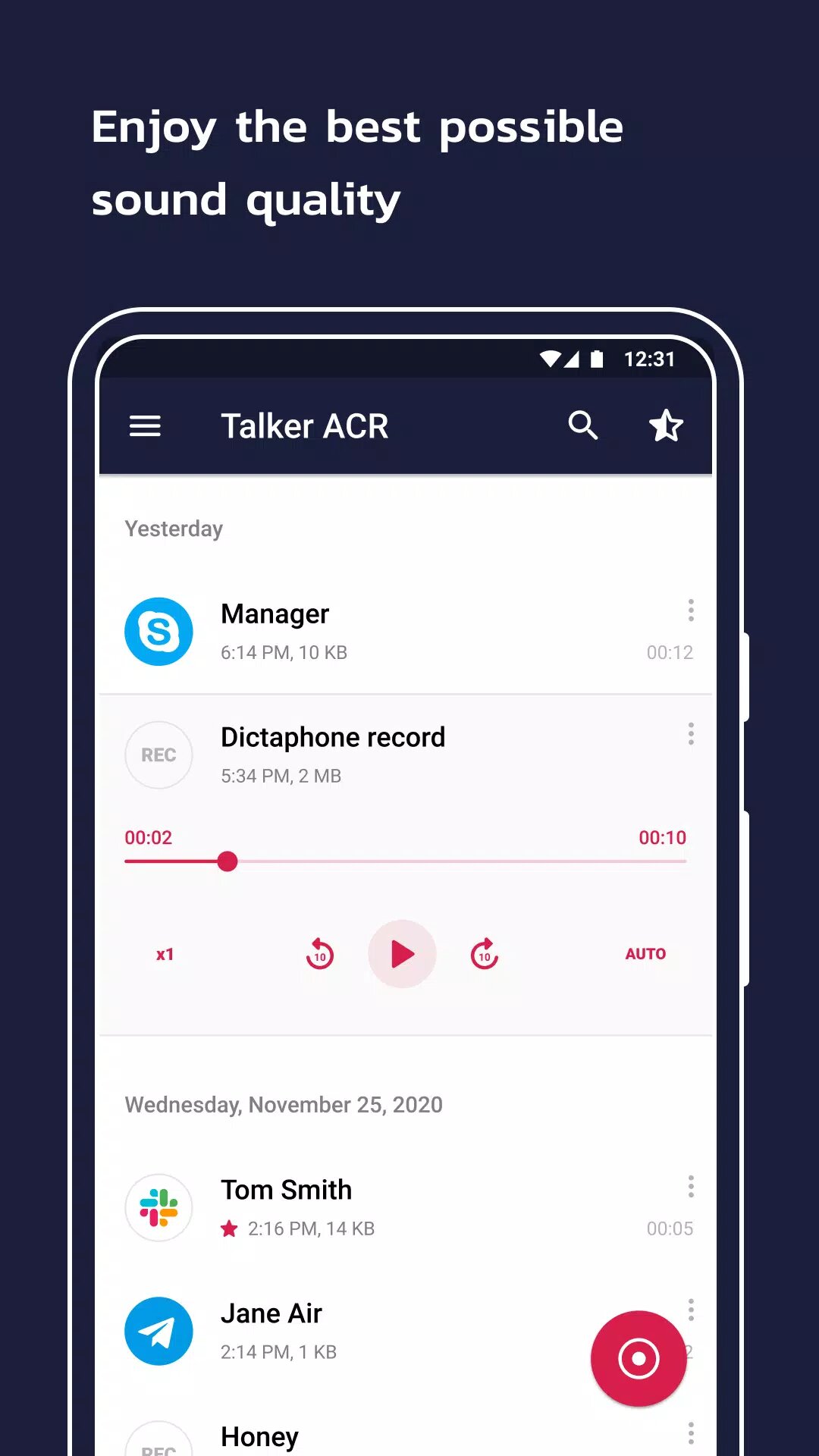 Talker ACR имеет простой и интуитивно понятный пользовательский интерфейс и оснащен передовыми функциями для сохранения максимального качества звука, а также предлагает широкий спектр дополнительных функций.