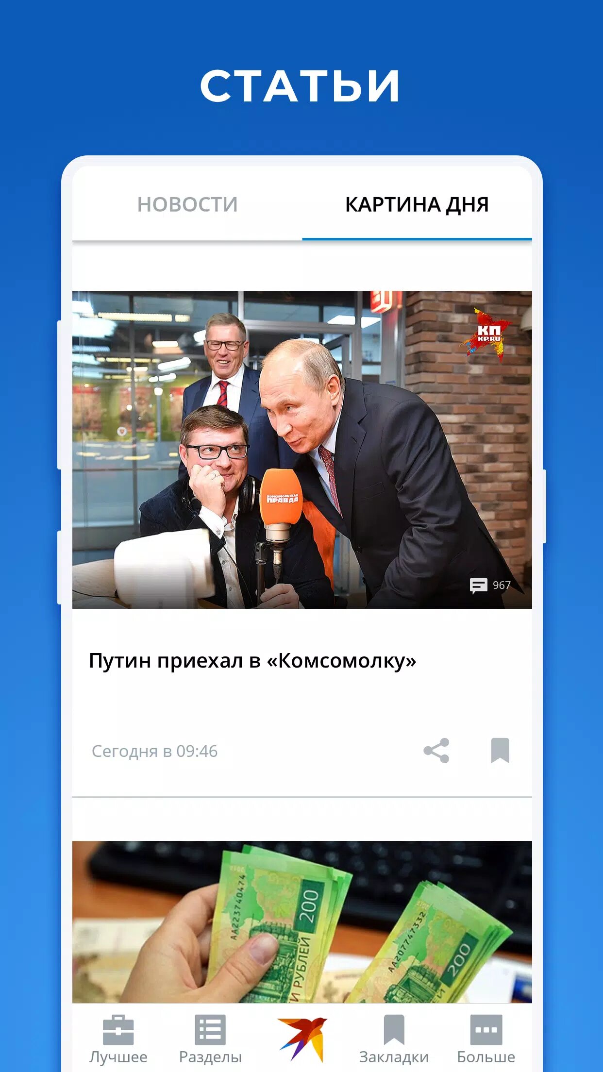 Слушайте подкасты и прямой эфир радио «Комсомольская правда», смотрите фото и видео через встроенный плеер прямо в приложении. Сохраняйте статьи в закладки для чтения offline.