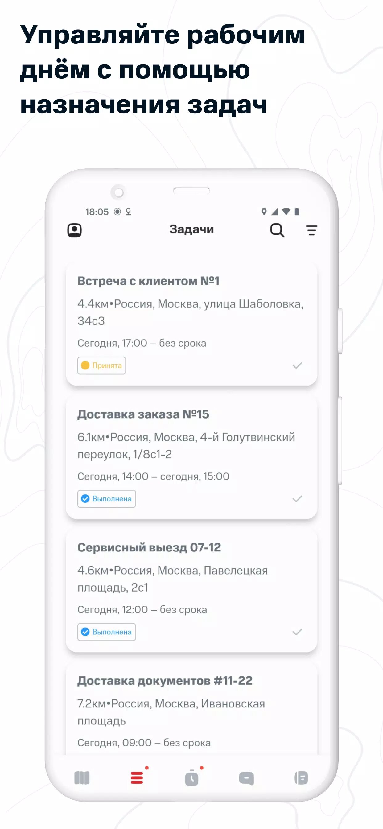 - построение маршрутов и контроль их соблюдения между задачами для минимизации пробега и времени,