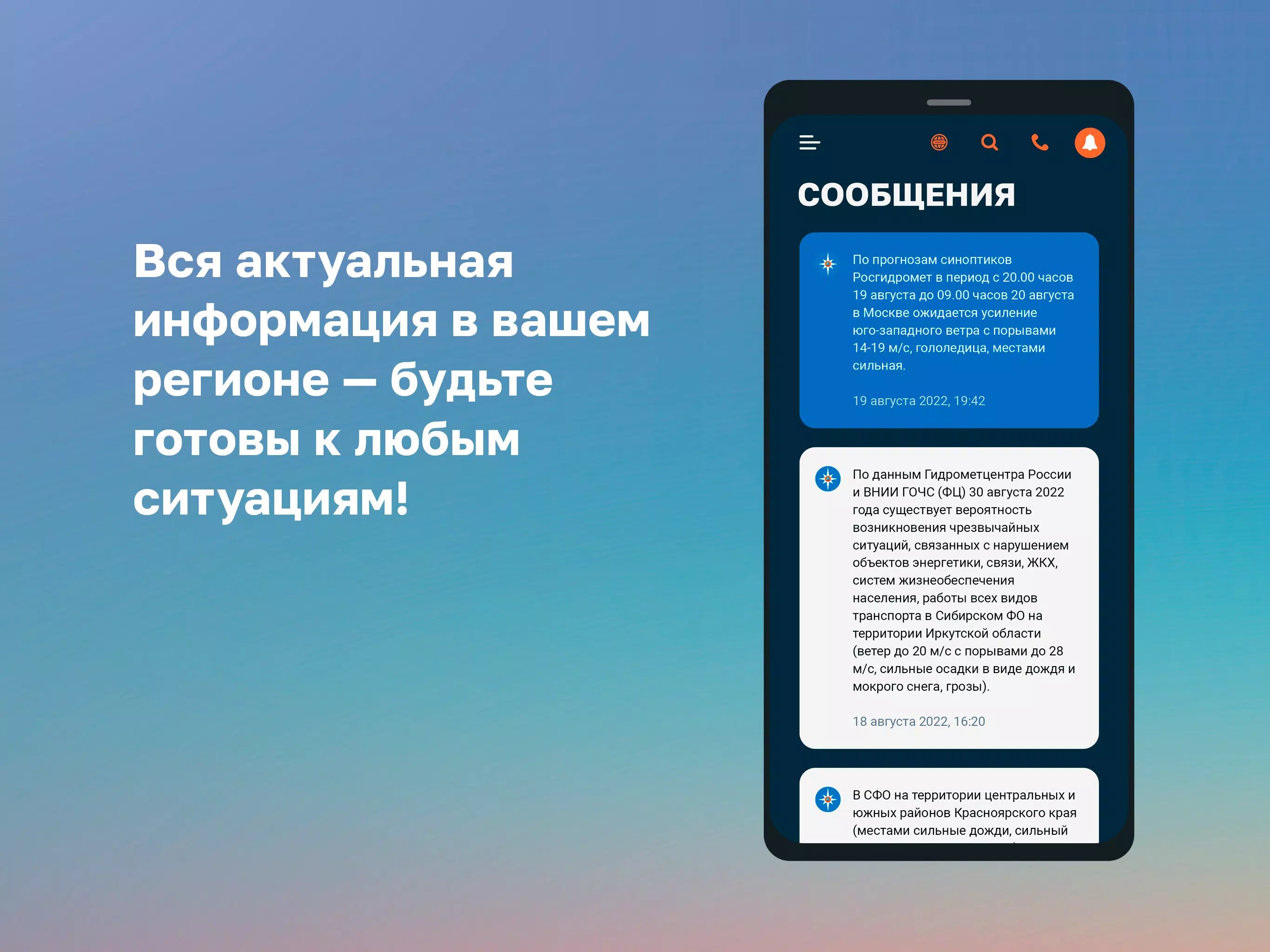 Приложение позволяет подготовиться к различным чрезвычайным ситуациям, получать актуальную информацию о возможных угрозах и рисках.