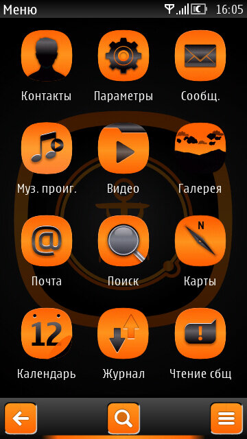 JoikuSpot by ThaBull это отличная тема в чёрно-оранжевых тонах для symbian.