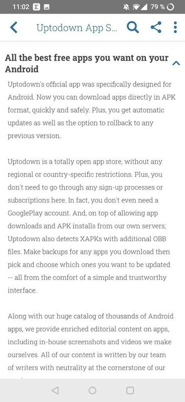 Еще одна важная особенность Uptodown Lite App Store заключается в том, что все следы библиотек Google были полностью удалены. Благодаря этой функции вы можете обойти запреты устройств или страну, которая блокирует различные IPS или службы. Здесь также очень важен тот факт, что Uptodown — это международная торговая площадка без географических барьеров. Вы можете получить доступ к тысячам APK и даже к более старым версиям игр и приложений, которые можно установить за секунды, без необходимости создать учетную запись.