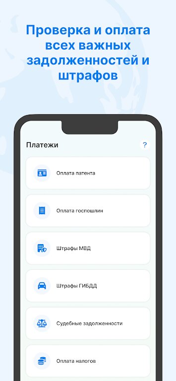 Вы можете не беспокоиться о том, что пропустите важные события: в нужный момент приложение пришлет уведомление о необходимости погасить задолженности, оплатить штрафы или продлить патент на работу.