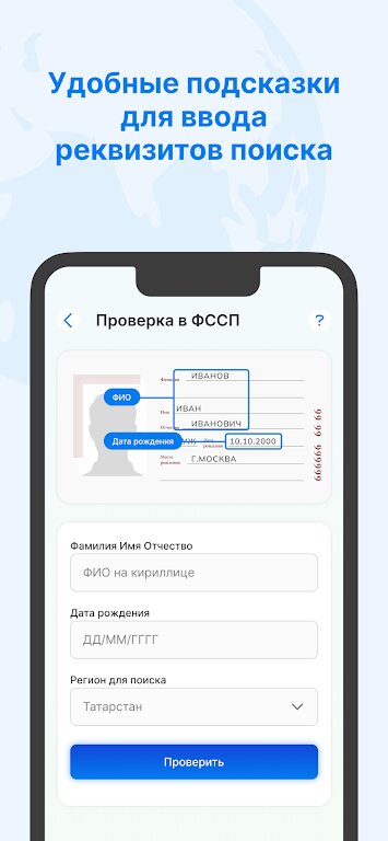 — Введите данные, по которым хотите провести проверку. Проверка выполняется в официальной базе данных задолженностей — ГИС ГМП;