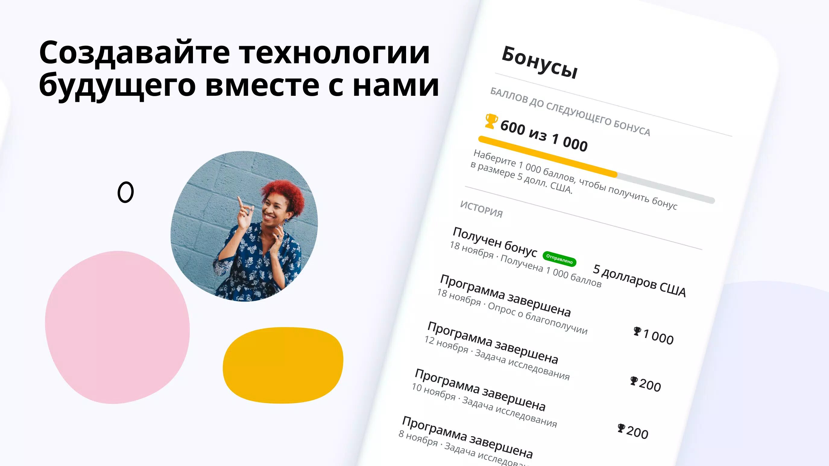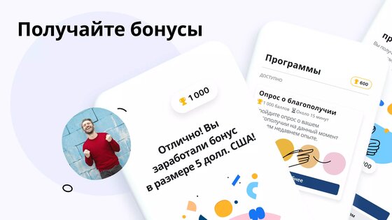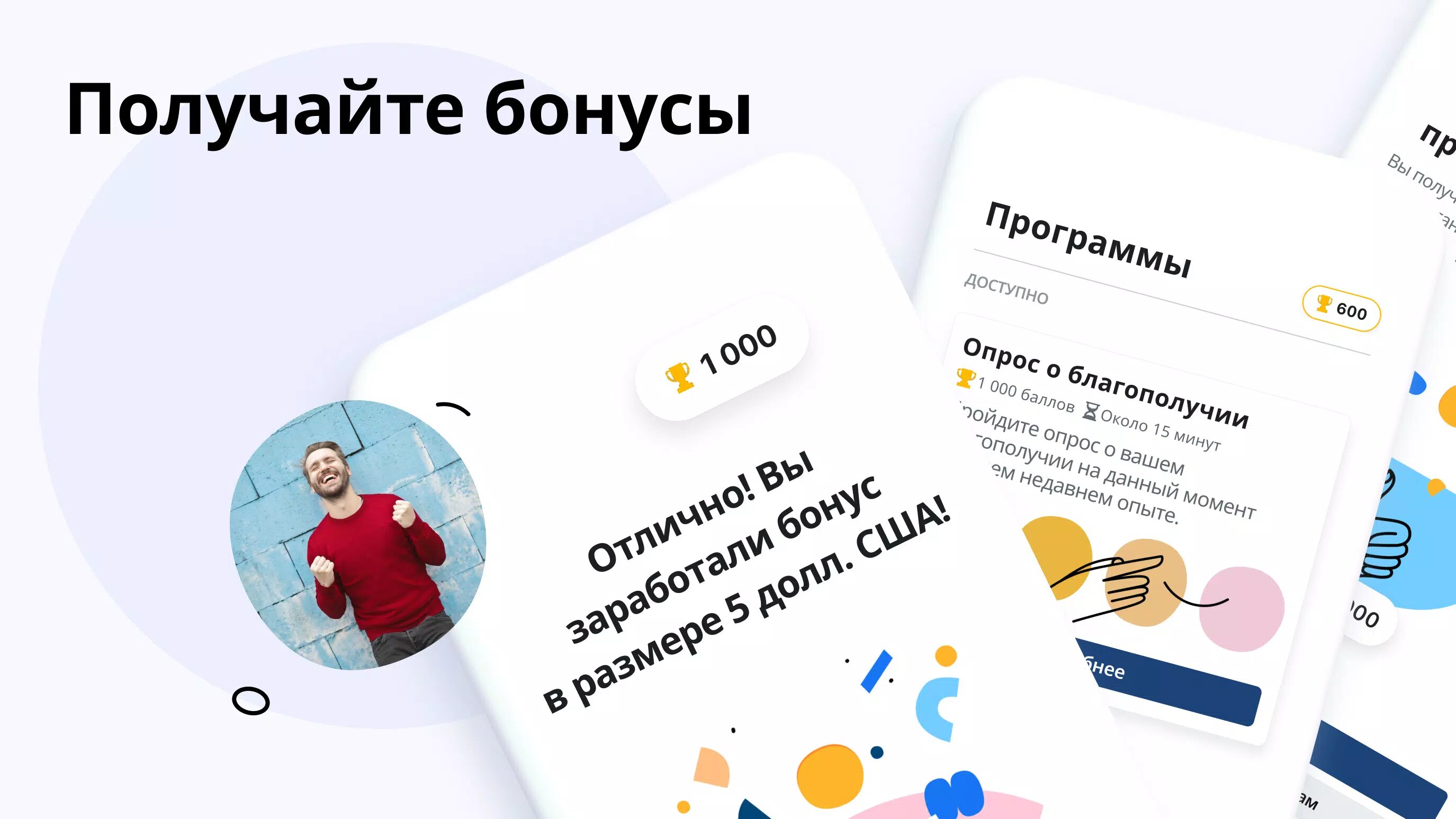 - Зарабатывайте баллы и бонусы. Получайте бонусы за участие в опросах, заданиях и исследованиях.