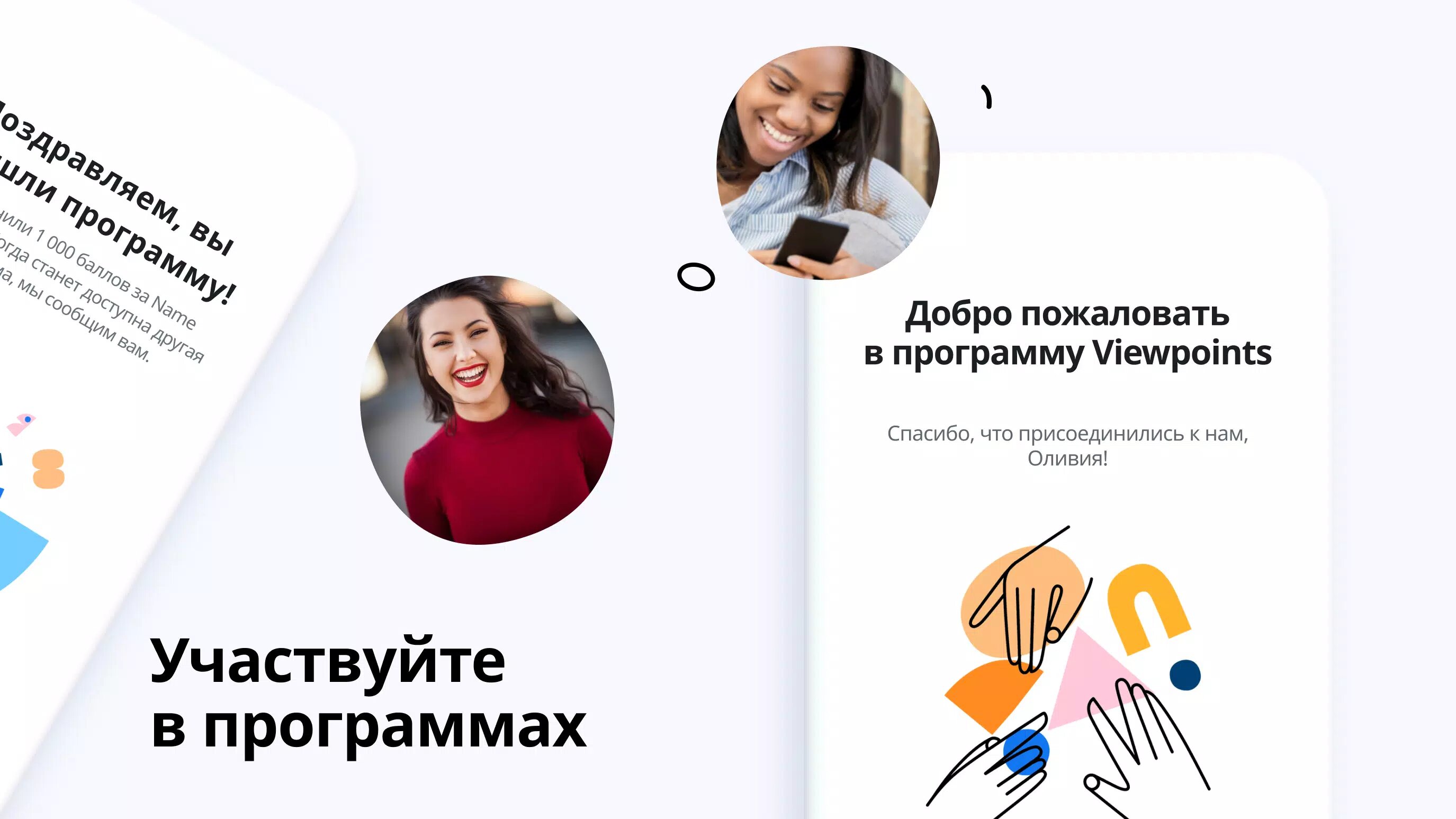 Прежде чем начать, установите приложение Viewpoints и создайте аккаунт. Как только вам станут доступны наши программы, вы получите электронное письмо или уведомление. Заданием программы может быть участие в исследовании, опросе или испытании новых продуктов. Вы получите бонусы за каждую успешно выполненную программу.