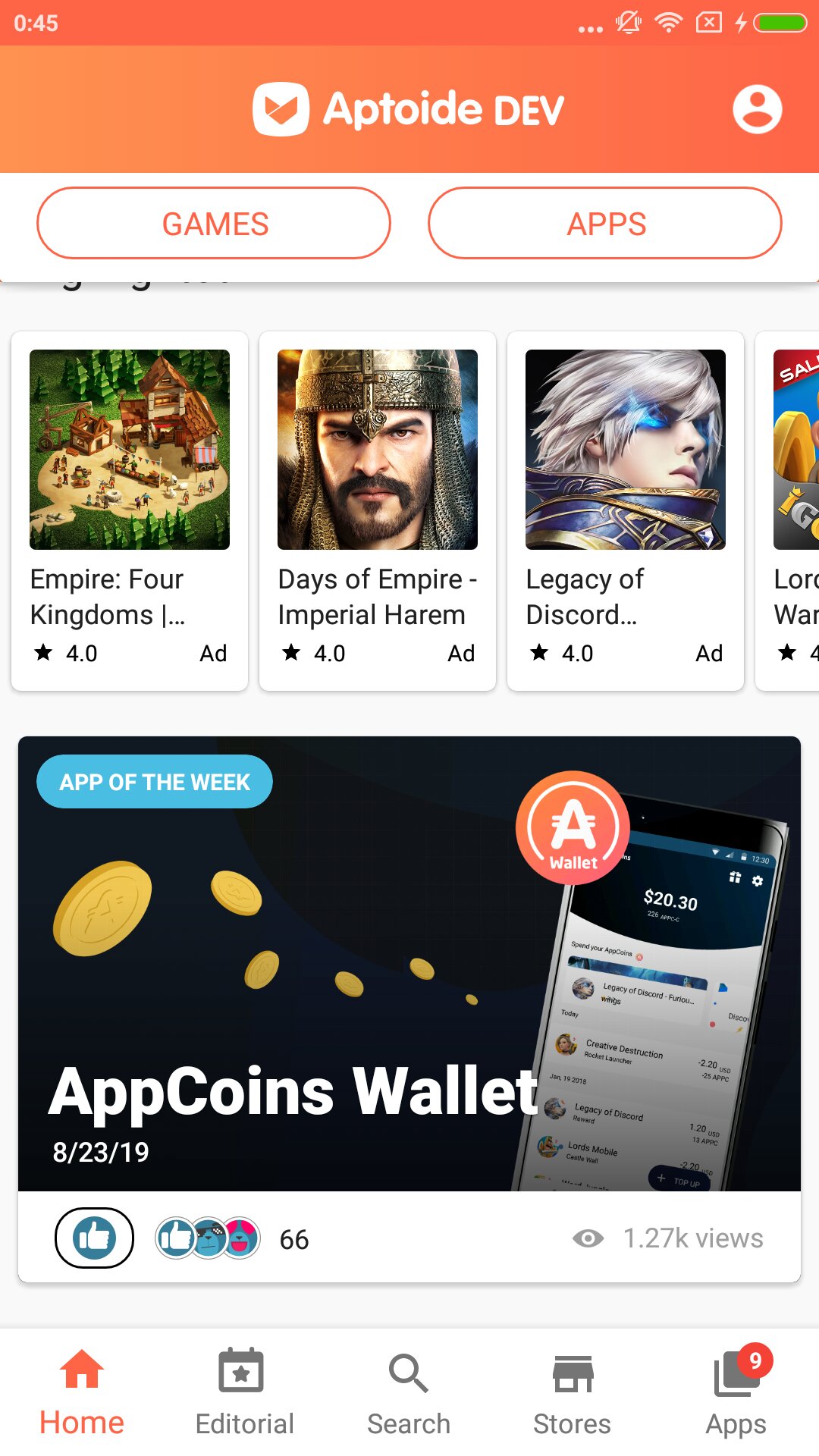 Aptoide управляется сообществом и предоставляет приложения через социальные сети. Он предлагает любому пользователю возможность создавать собственный магазин и управлять им, загружать собственные приложения, следить за рекомендациями сообщества и открывать для себя новый контент.