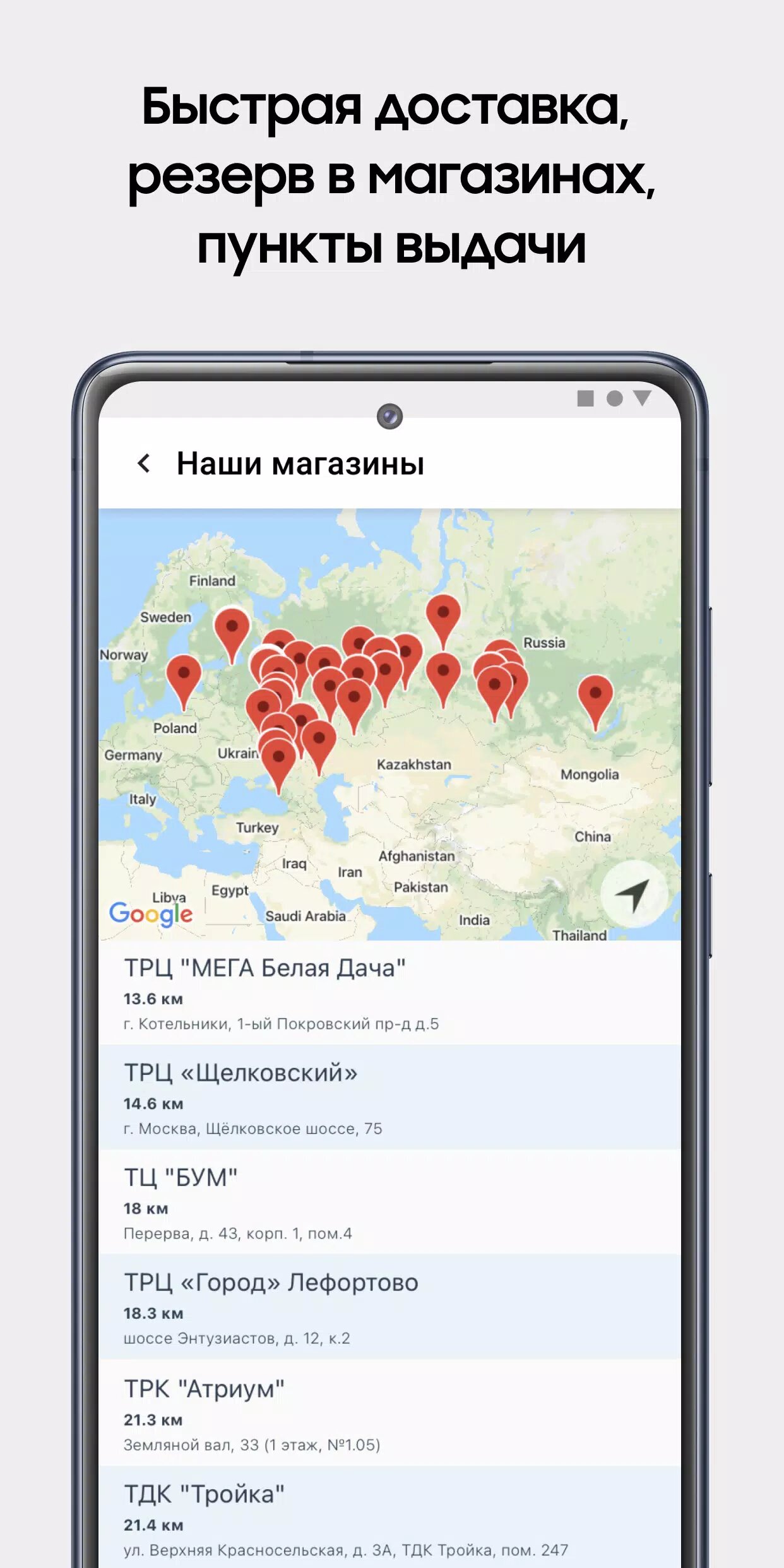 Для тех, кто любит пощупать товар перед покупкой, в приложении есть карта фирменных магазинов Samsung. Вы сможете узнать, где ближайший магазин и график его работы. Нужно вспомнить, когда, что и за сколько покупали? Посмотрите в истории заказов, там представлена вся купленная вами электроника и бытовая техника. Непонятно, как работает доставка день в день? Все детали, условия и сроки вы найдете в приложении.