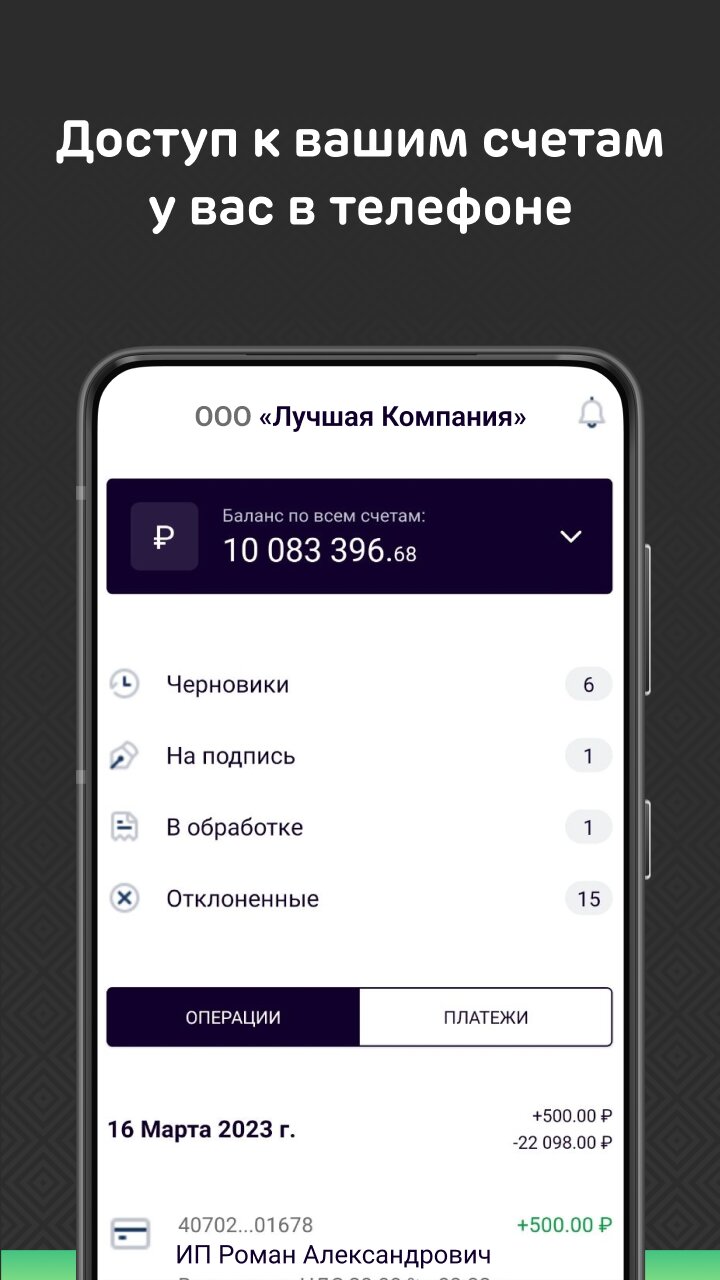 — просматривайте актуальные данные по счетам своих компаний (операции, выписки, реквизиты);