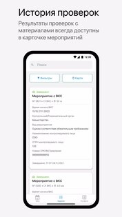 Проверочные листы позволяют быстро фиксировать результаты и вносить изменения во время проверки. После завершения проверки, с ними можно ознакомиться в карточке заверенного мероприятия.
