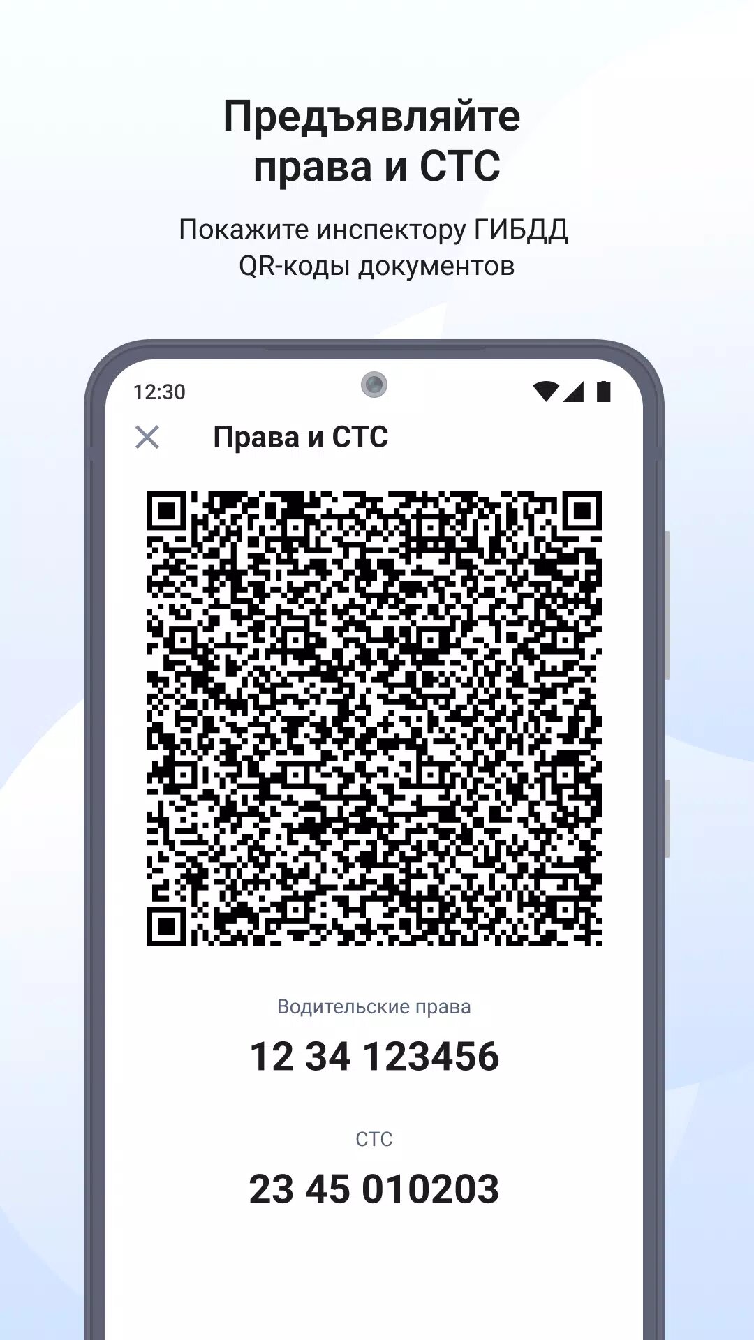 Предъявите права и СТС в виде QR-кода по просьбе сотрудника ДПС. Данные о водителе и автомобиле загружаются из базы ГИБДД и всегда актуальны.