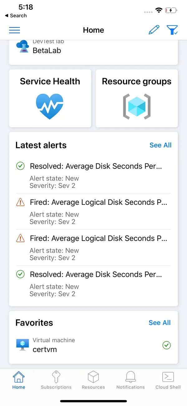 Microsoft Azure позволяет отслеживать и управлять вашей средой Azure с мобильного устройства.