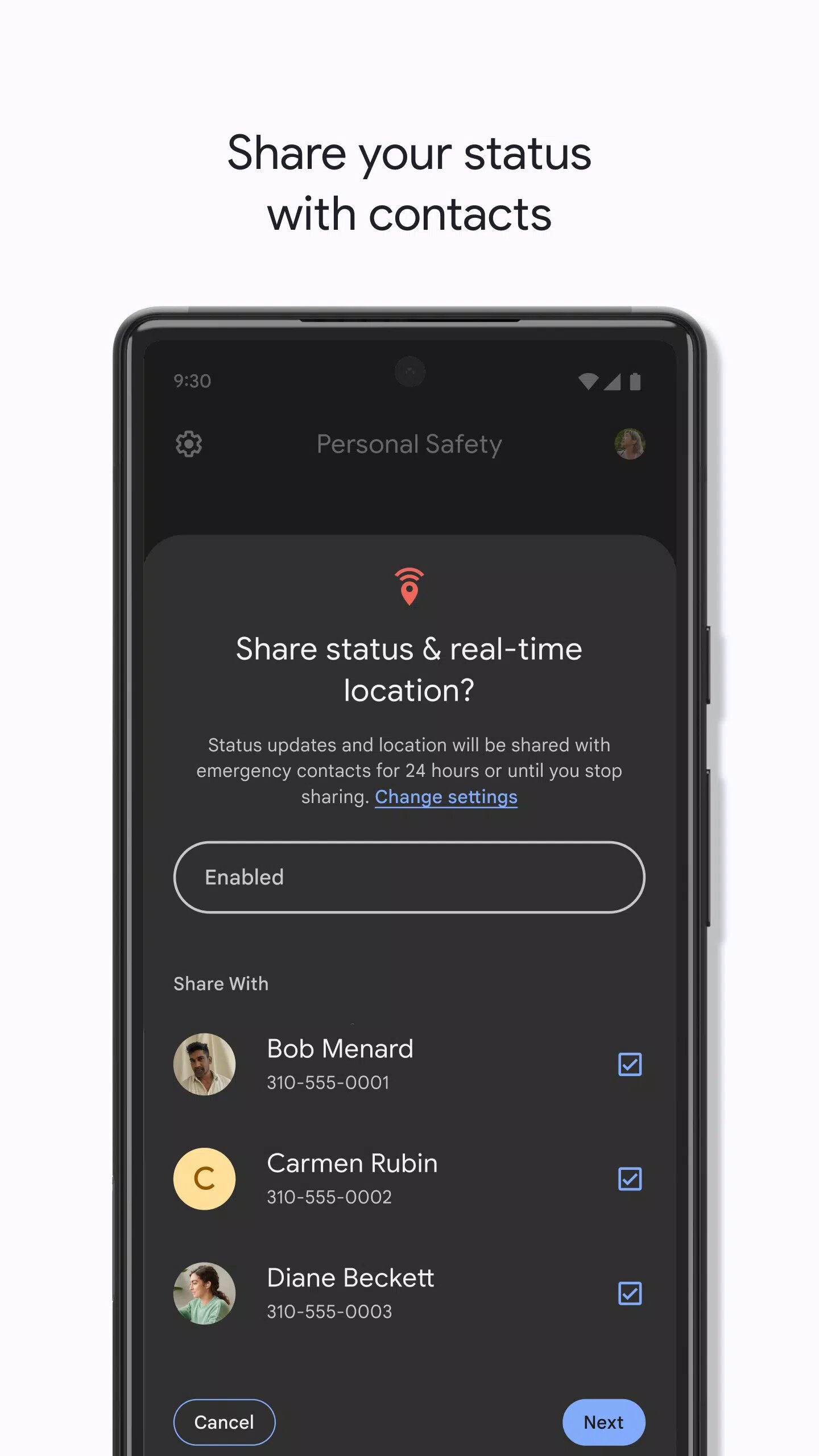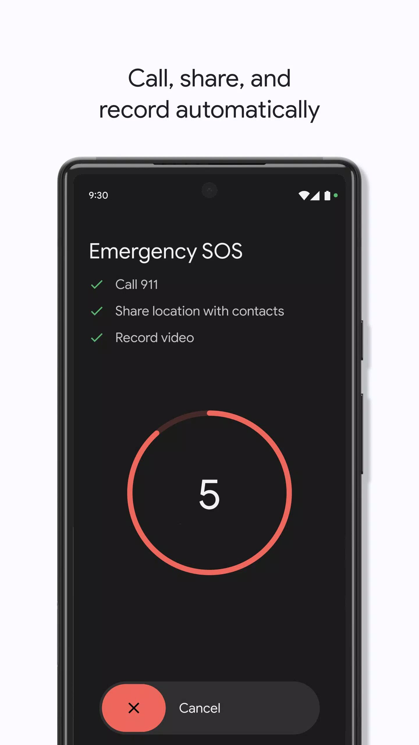 - Отправка данных в экстренных случаях. С помощью этой функции можно передавать информацию о текущем местоположении и другие важные данные контактам для экстренных случаев. Функция также работает с Google Assistant.
