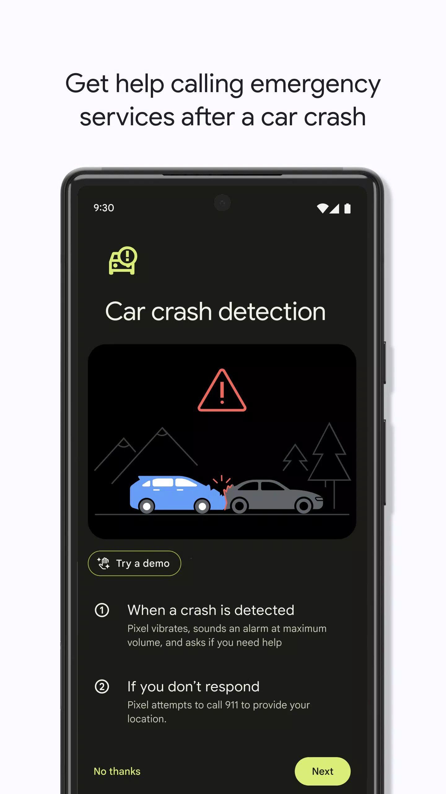 - Обнаружение ДТП (только на телефонах Pixel). Вы можете включить вызов экстренных служб в случае аварии. Если телефон Pixel определит, что вы попали в ДТП, он автоматически наберет нужный номер. Функция доступна не на всех устройствах и языках и работает только в некоторых странах. Узнать больше можно на странице g.co/pixel/carcrashdetection.