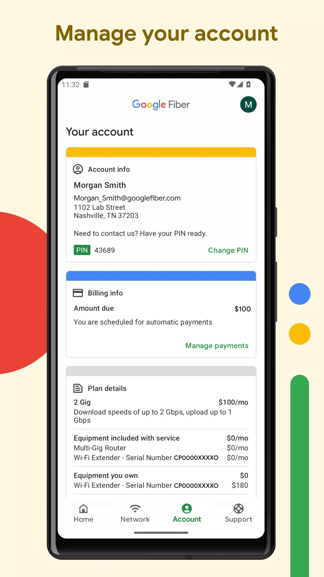 Управляйте своей учетной записью Google Fiber. Просматривайте свой текущий баланс и предыдущие выписки и быстро управляйте своими платежами.
