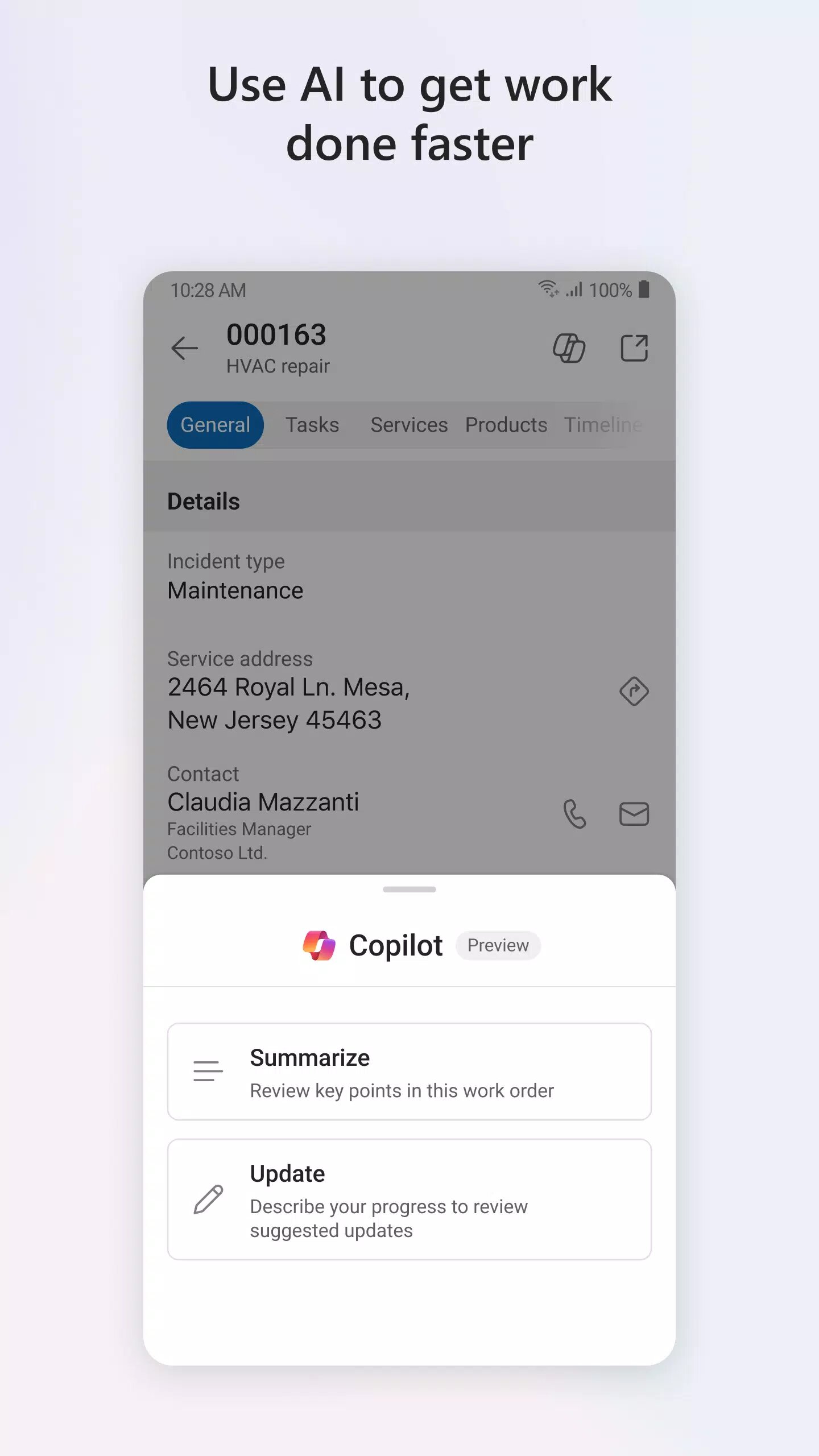 Мобильное приложение Dynamics 365 Field Service создано специально в соответствии с требованиями специалистов по выездному обслуживанию. Приложение обеспечивает возможность надежной работы с данными, необходимыми при посещении удаленных расположений, в которых отсутствует доступ к Интернету. Периодическая синхронизация данных позволяет отправлять в операционный отдел организации сведения о выполняемой работе, что дает возможность выполнять необходимые действия.