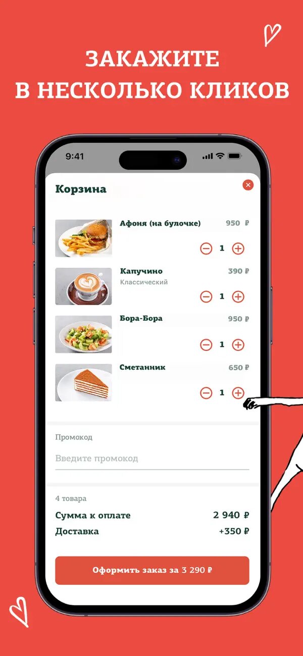 - быстро заказать блюда, напитки и десерты;