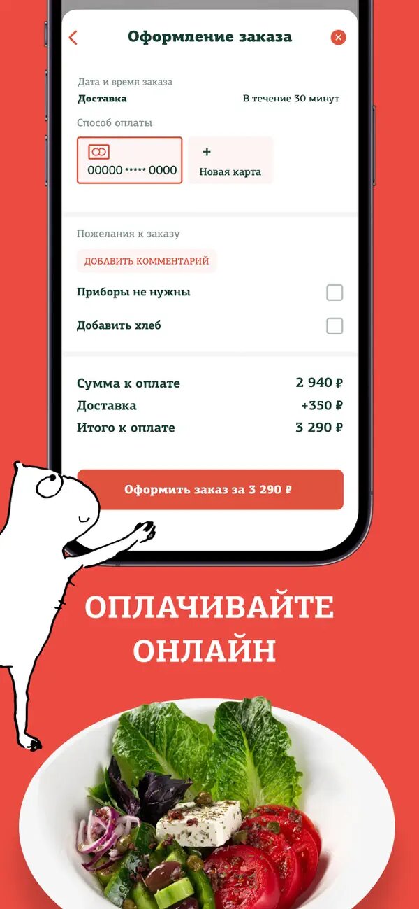 - оплатить заказ банковской картой;