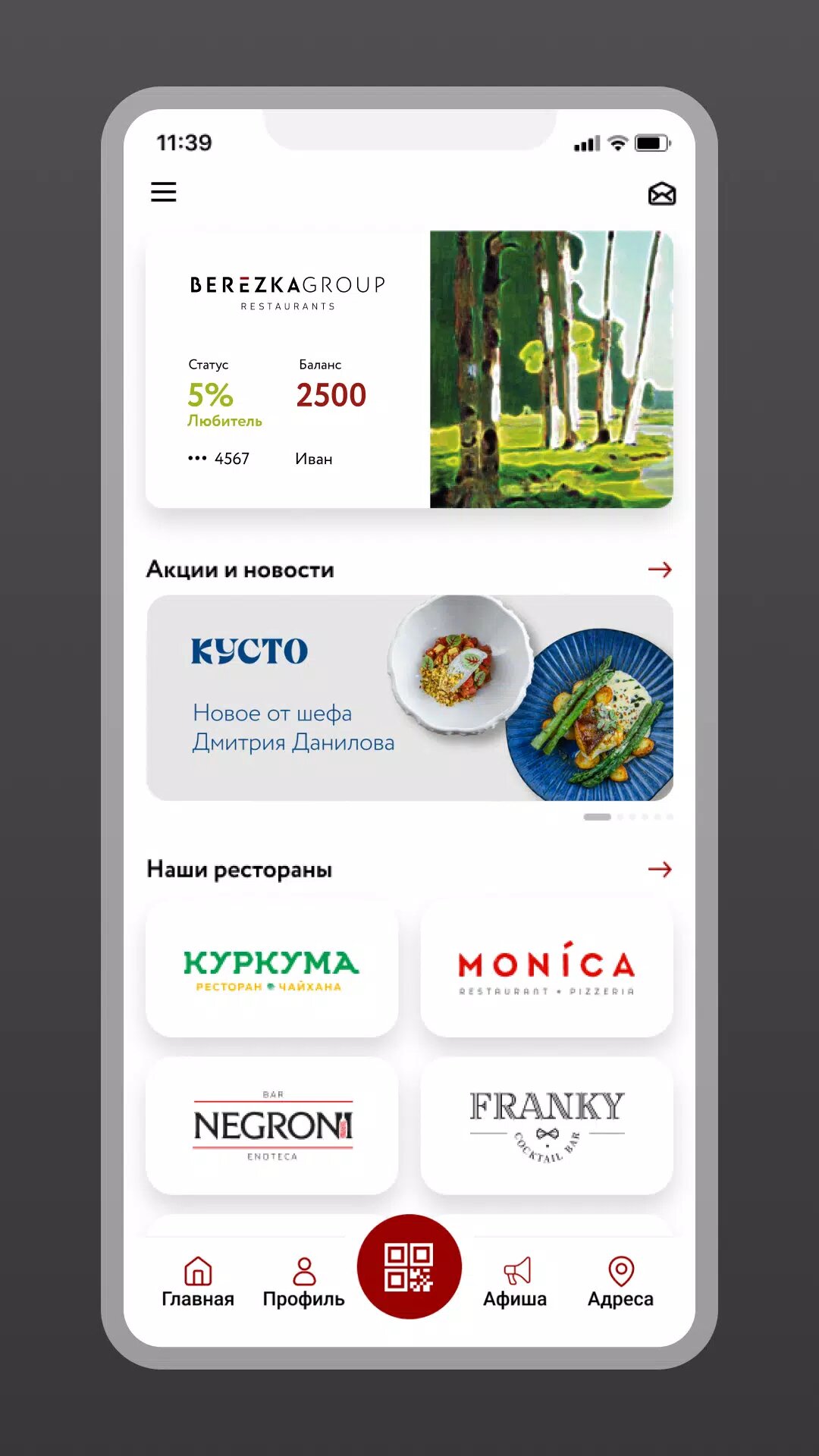 Быстрый доступ к ресторанам сети BerёzkaGroup — карта лояльности, персональные подарки, бронирование, доставка.