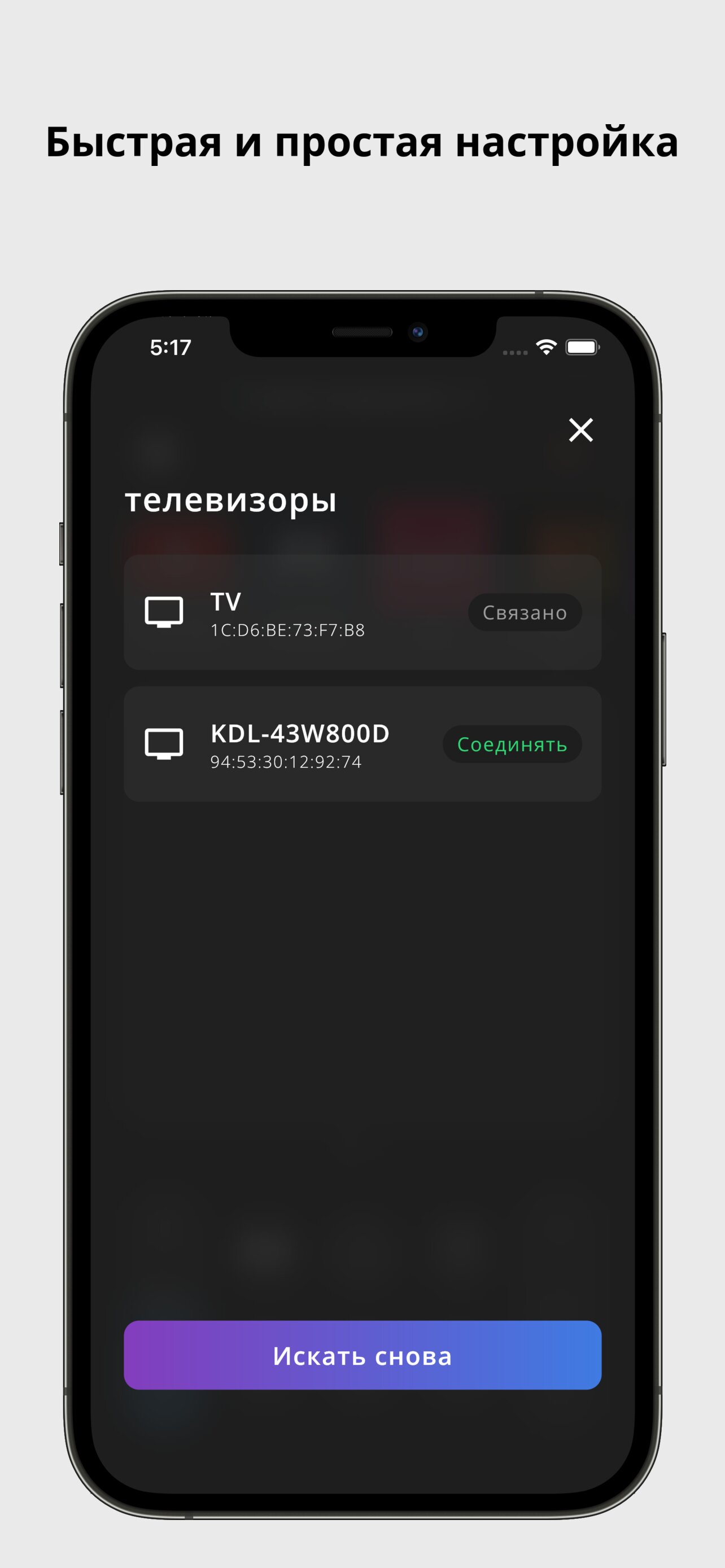 Подключите телефон/планшет к той же сети Wi-Fi, что и ваш телевизор, чтобы приложение заработало.