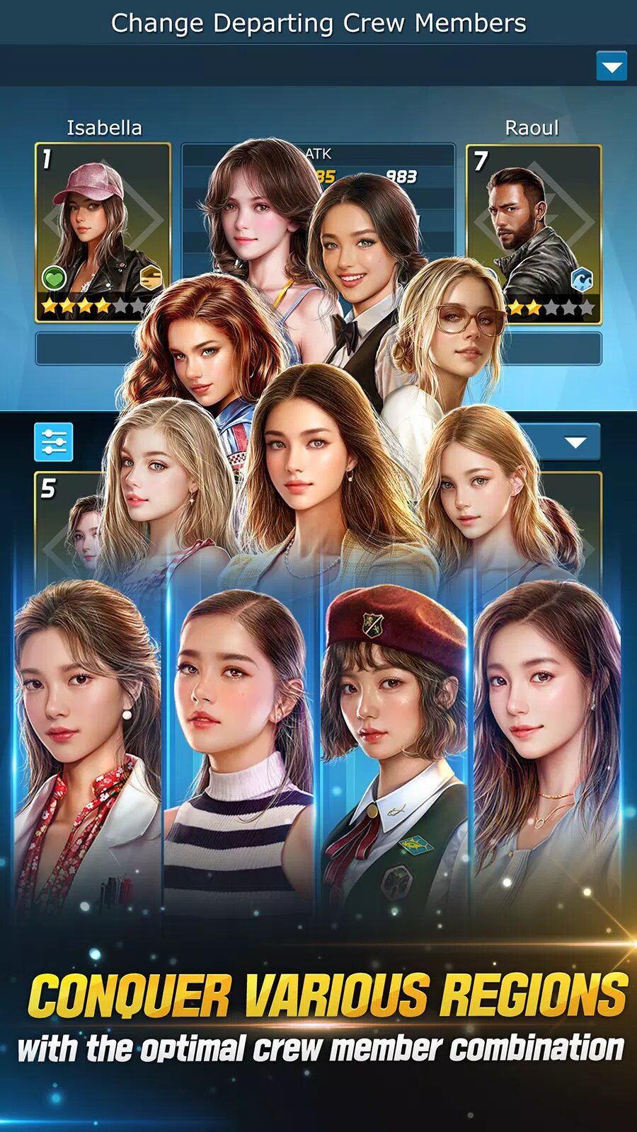 — Экспериментируйте с разными членами экипажа, обладающими разными навыками, чтобы эффективно покорять различные регионы!