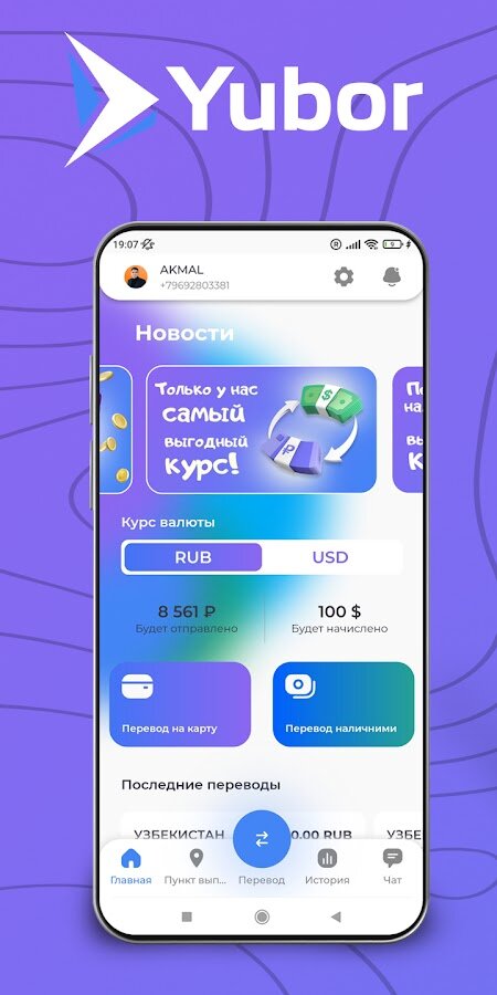Представляем вам приложение YUBOR — денежные переводы, ваш удобный и безопасный способ отправлять деньги своим родным и близким в Узбекистан, Таджикистан, Киргизстан и Казахстан.
