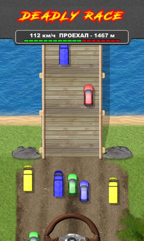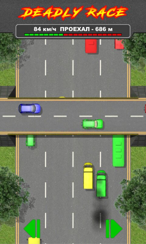 Держись до последнего. Проедь как можно большее расстояние и покажи мастерство гонщика в этой смертельной гонке. Избегай столкновений с другими машинами и прочими препятствиями встречающимися на дороге и её обочинах. Каждое столкновение уменьшает прочность вашей машины до полного её разрушения…. Единственная возможность несколько снизить скорость без повреждения автомобиля — проезжать по песчаным участкам на дороге.