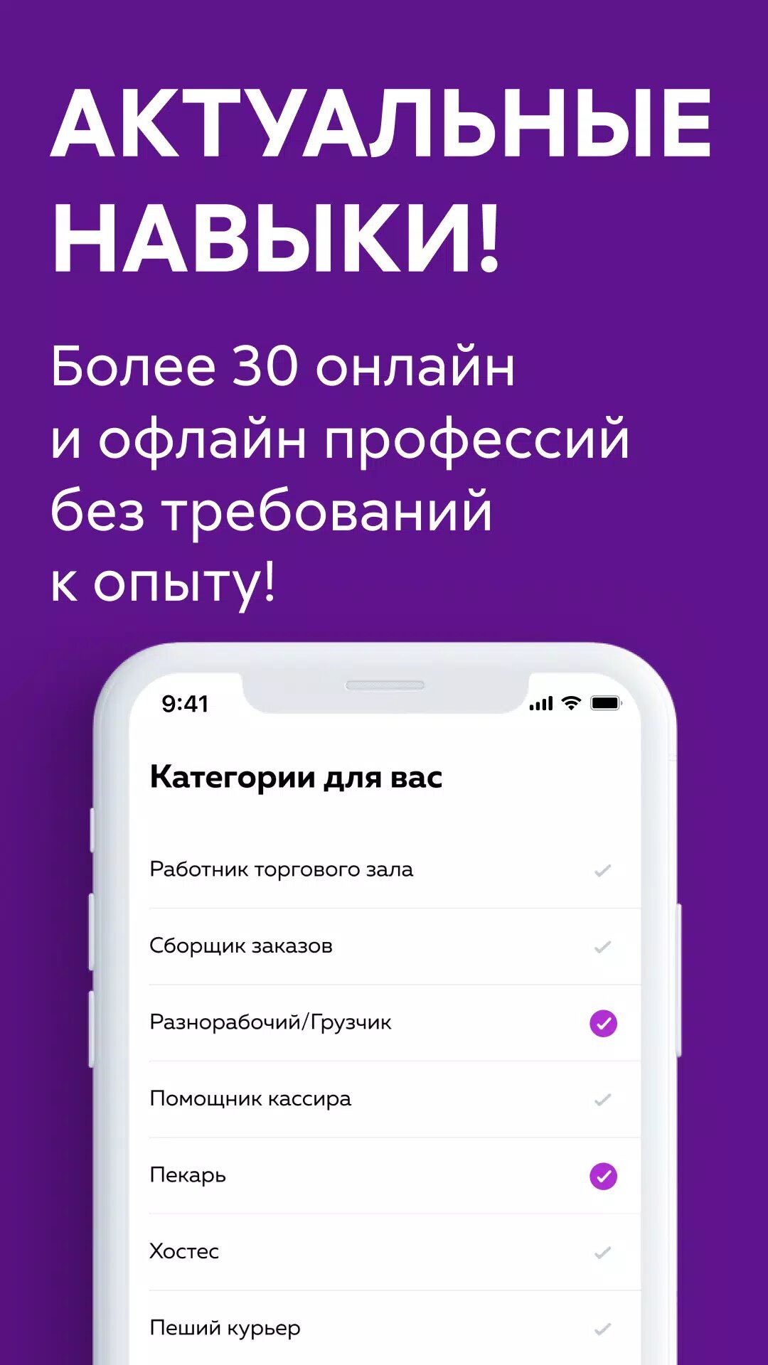 Мы предлагаем разовую подработку во многих сферах: разнорабочий, автокурьер, грузчик, а также задания для работников торгового зала в магазинах обуви, продуктов, парфюмерии и др. И все это — в вашем телефоне!