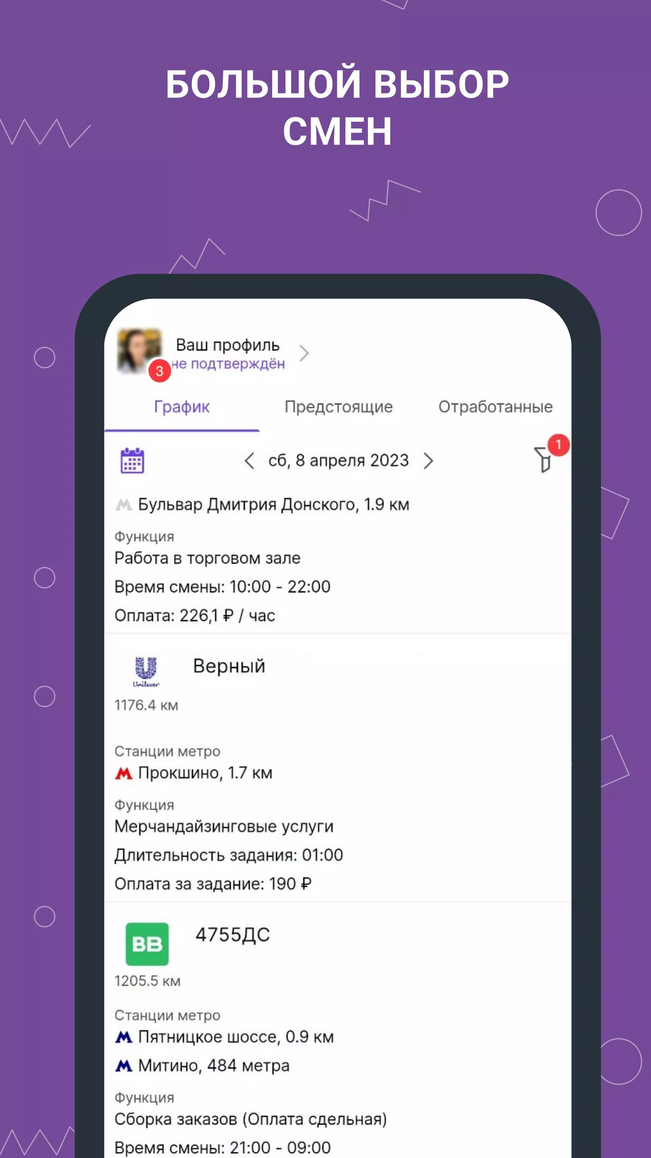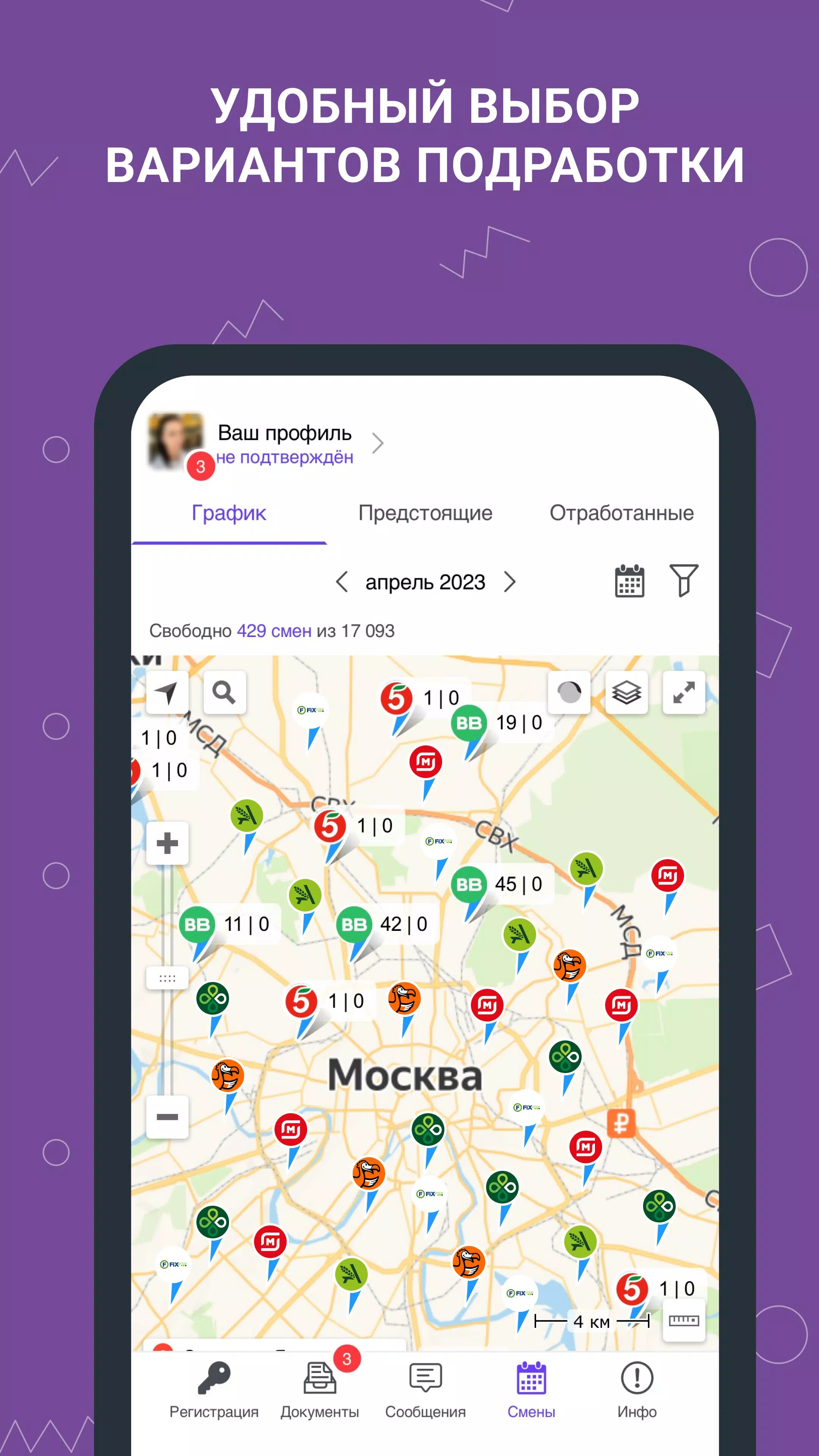 - Выбирайте удобную подработку в вашем городе от крупных торговых сетей.