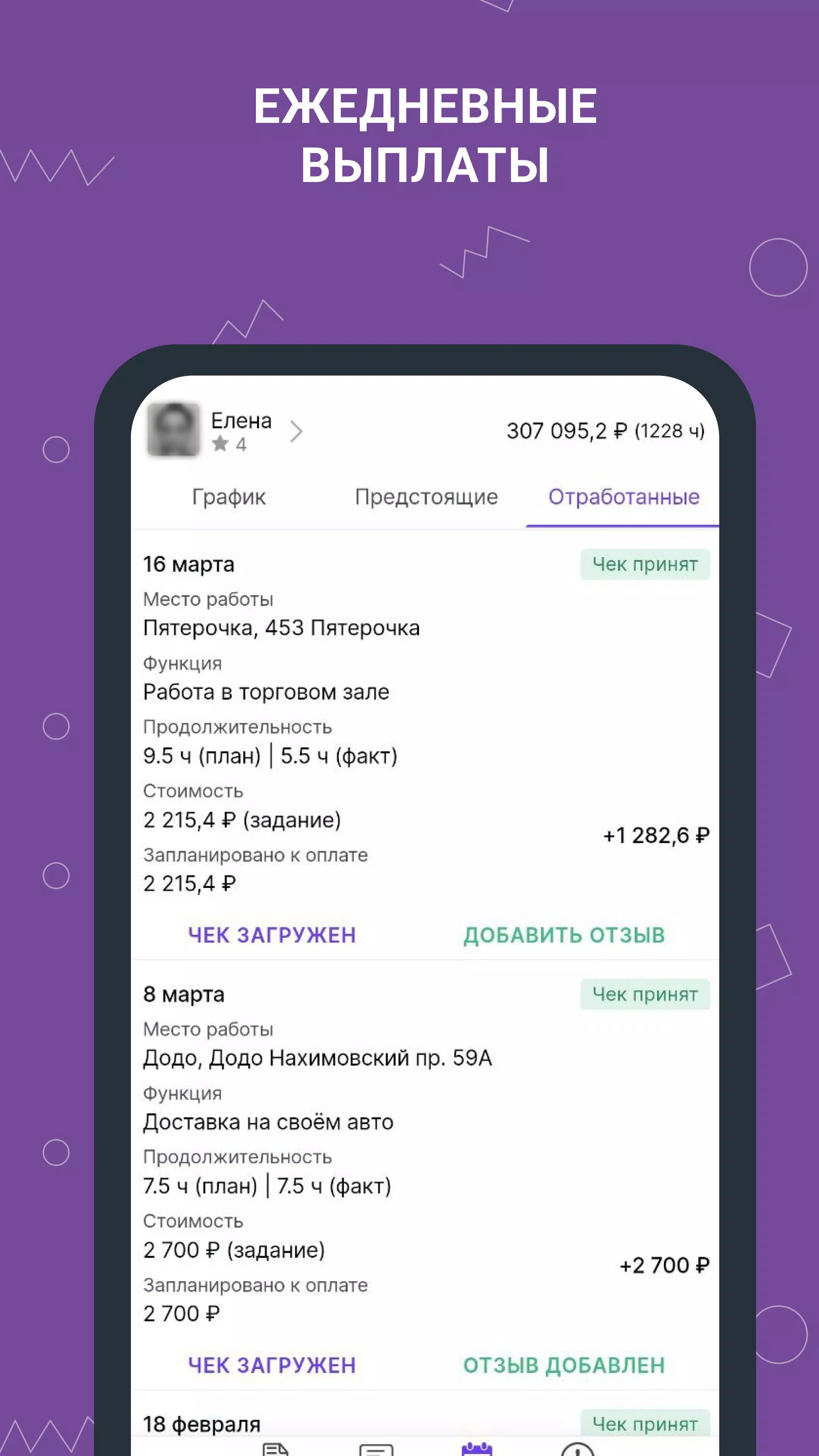 - Отработайте забронированную смену.