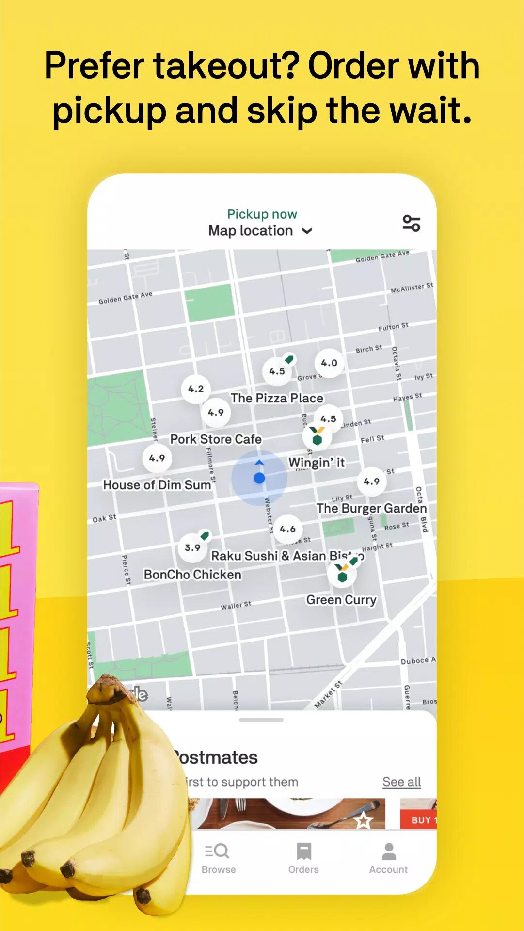Забудьте об очередях! Пицца, буррито, бургеры, суши, лапша и вок — в Postmates есть рестораны на любой вкус. Добавьте в корзину понравившиеся позиции и закажите доставку на ближайшее время или к установленному часу. Выбор за вами!