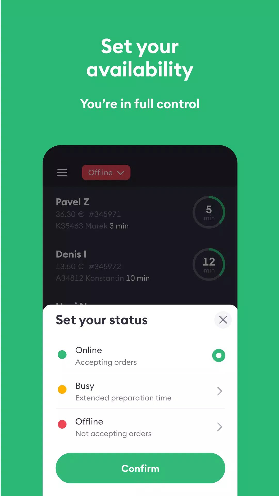 Приложение «Bolt Food для ресторанов» позволяет вам централизованно управлять своим рестораном или магазином на Bolt Food.