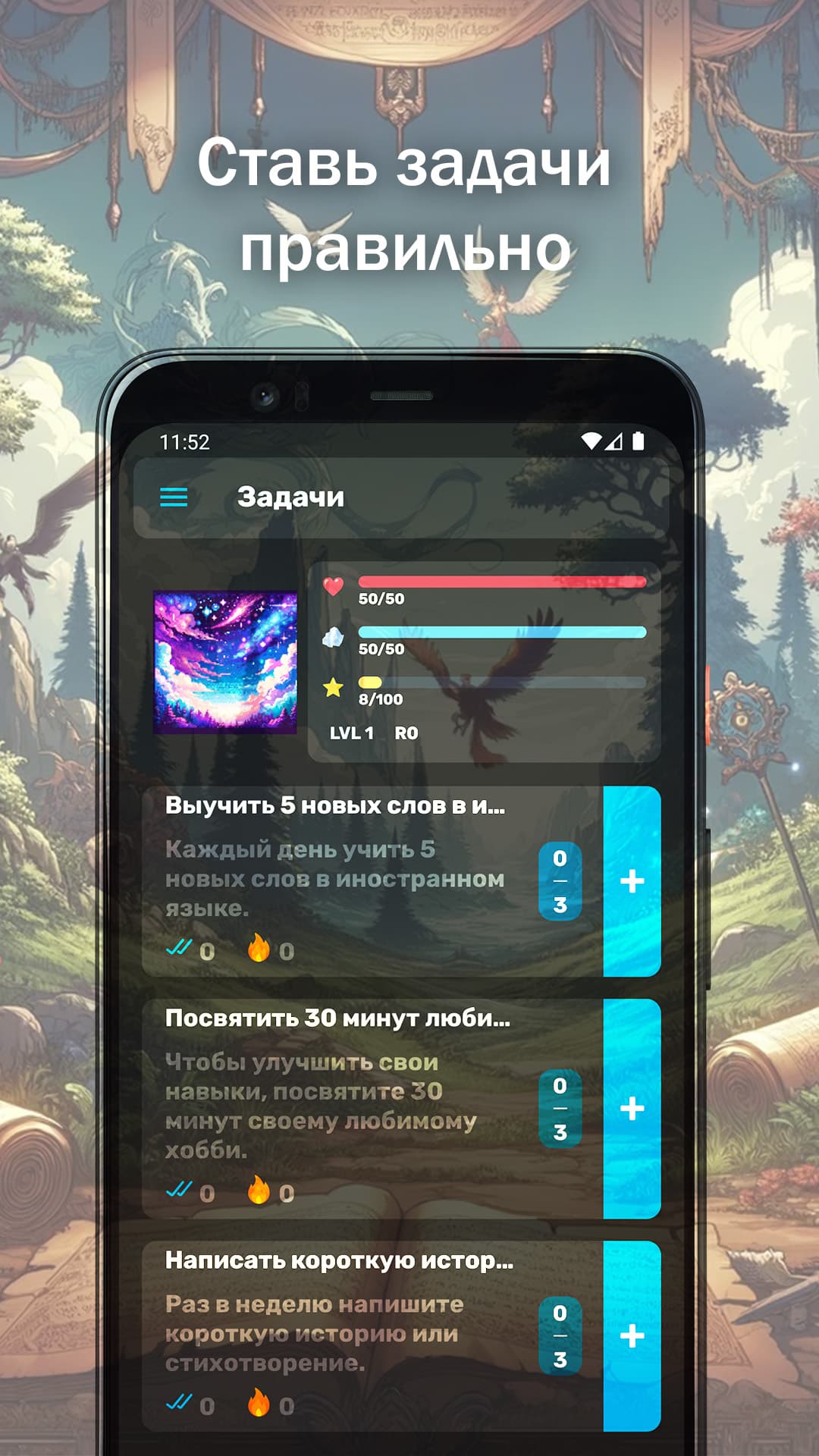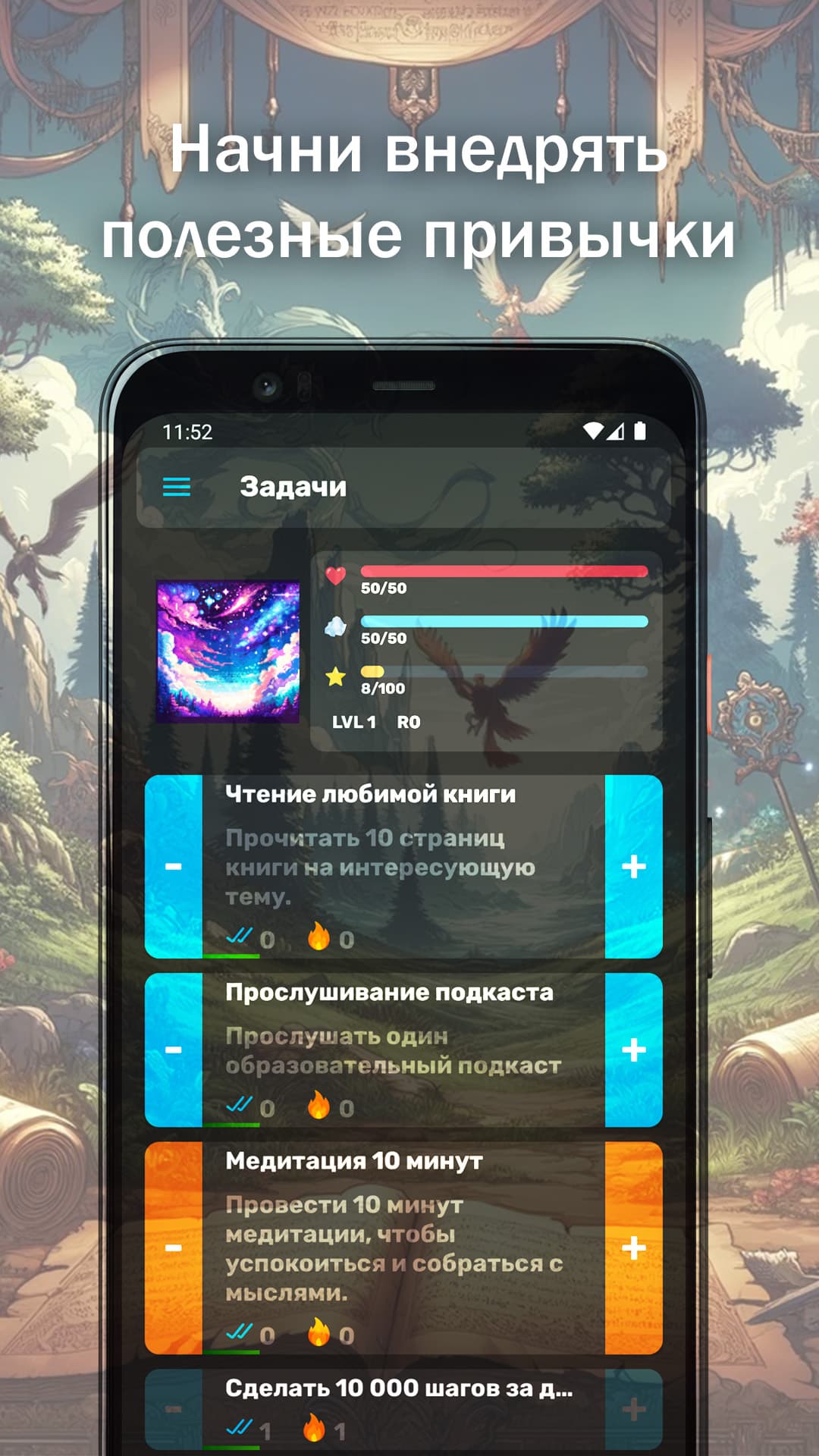 Превратите выполнение задач в увлекательное приключение с нашим RPG-приложением! Заводите список ежедневных задач, развивайте полезные привычки и получайте за это очки опыта для прокачки вашего уровня. Погрузитесь в мир, где каждое выполненное дело приближает вас к новым достижениям и открывает доступ к уникальным челленджам от активного сообщества. Вступайте в бадди-команды и соревнуйтесь с другими группами в выполнении задач, доказывая, что ваша команда — самая продуктивная и целеустремленная. Наше приложение не просто поможет вам стать более организованными и эффективными, но и превратит рутину в захватывающую игру, где каждый шаг вперед приносит радость от достигнутых результатов. Загрузите сейчас и начните свое приключение к лучшей версии себя!